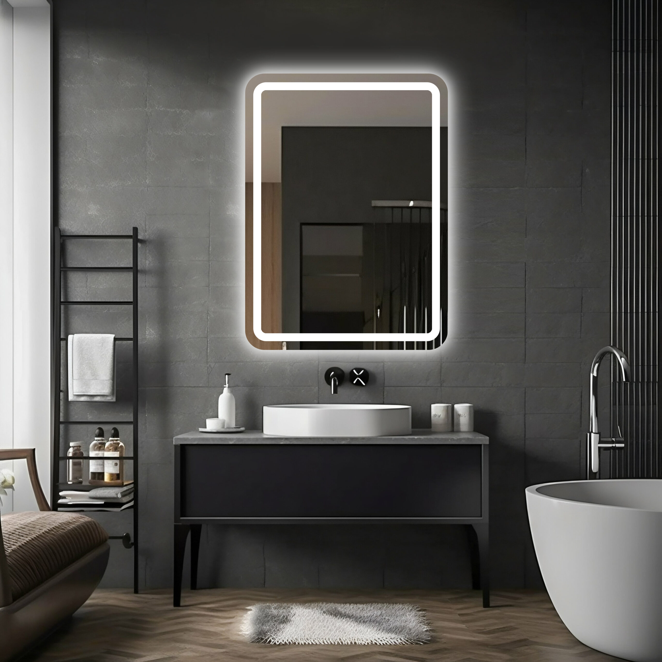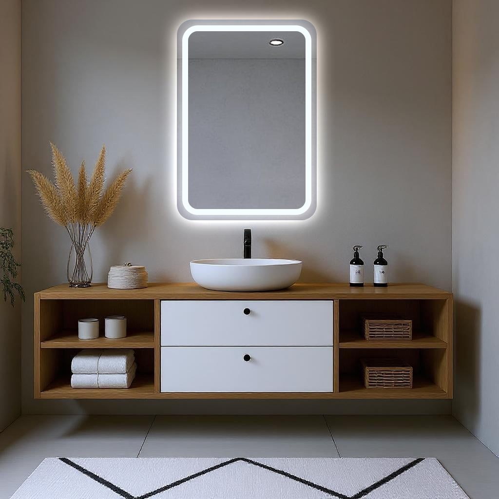 Nowoczesne wnętrza wymagają starannie dobranych dekoracji – lustro ledowe model AMOS to idealne rozwiązanie. Prosta forma bez ramy z miękkimi, zaokrąglonymi rogami wygląda spektakularnie w każdym pomieszczeniu, rozjaśniając je i optycznie powiększając przestrzeń.