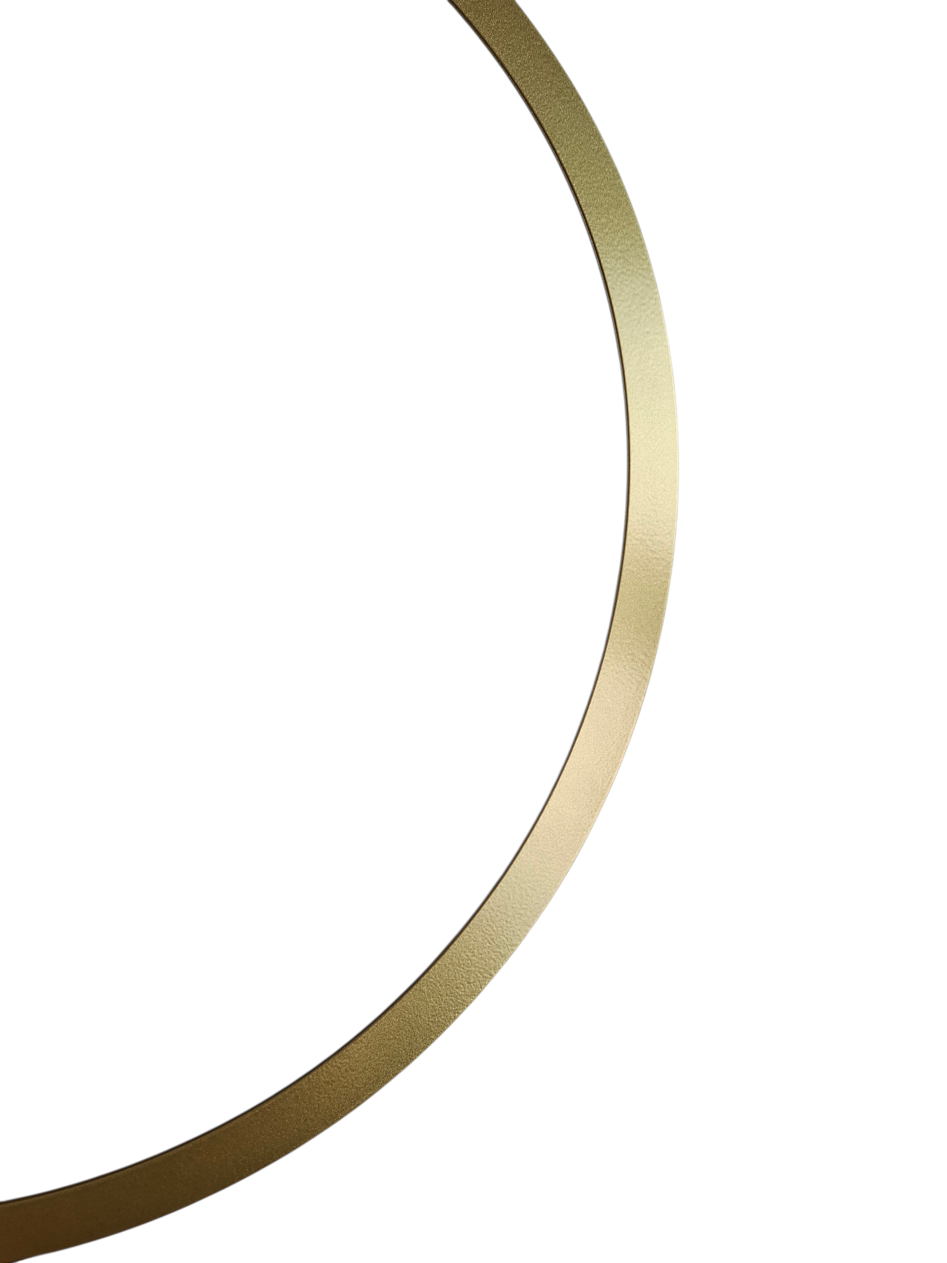 Złota rama o satynowym, metalicznym wykończeniu pięknie odbija światło i nadaje wnętrzu ciepła oraz luksusowego charakteru. Brak widocznych łączeń podkreśla perfekcyjną estetykę produktu i sprawia, że lustro prezentuje się wyjątkowo elegancko z każdej perspektywy.