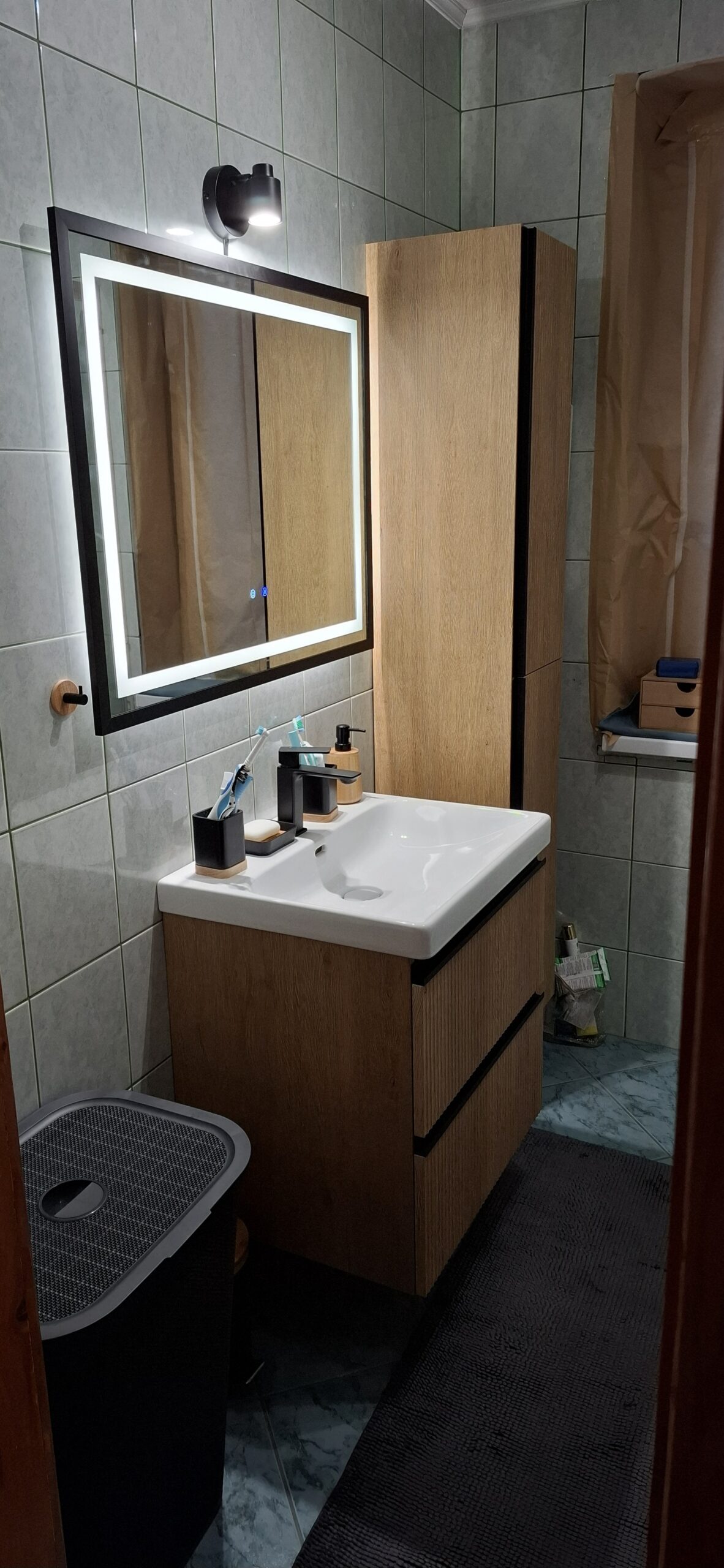 Prosta, geometryczna forma i czarna aluminiowa rama tworzą elegancki akcent, który pasuje zarówno do nowoczesnych łazienek, jak i industrialnych, minimalistycznych przestrzeni.