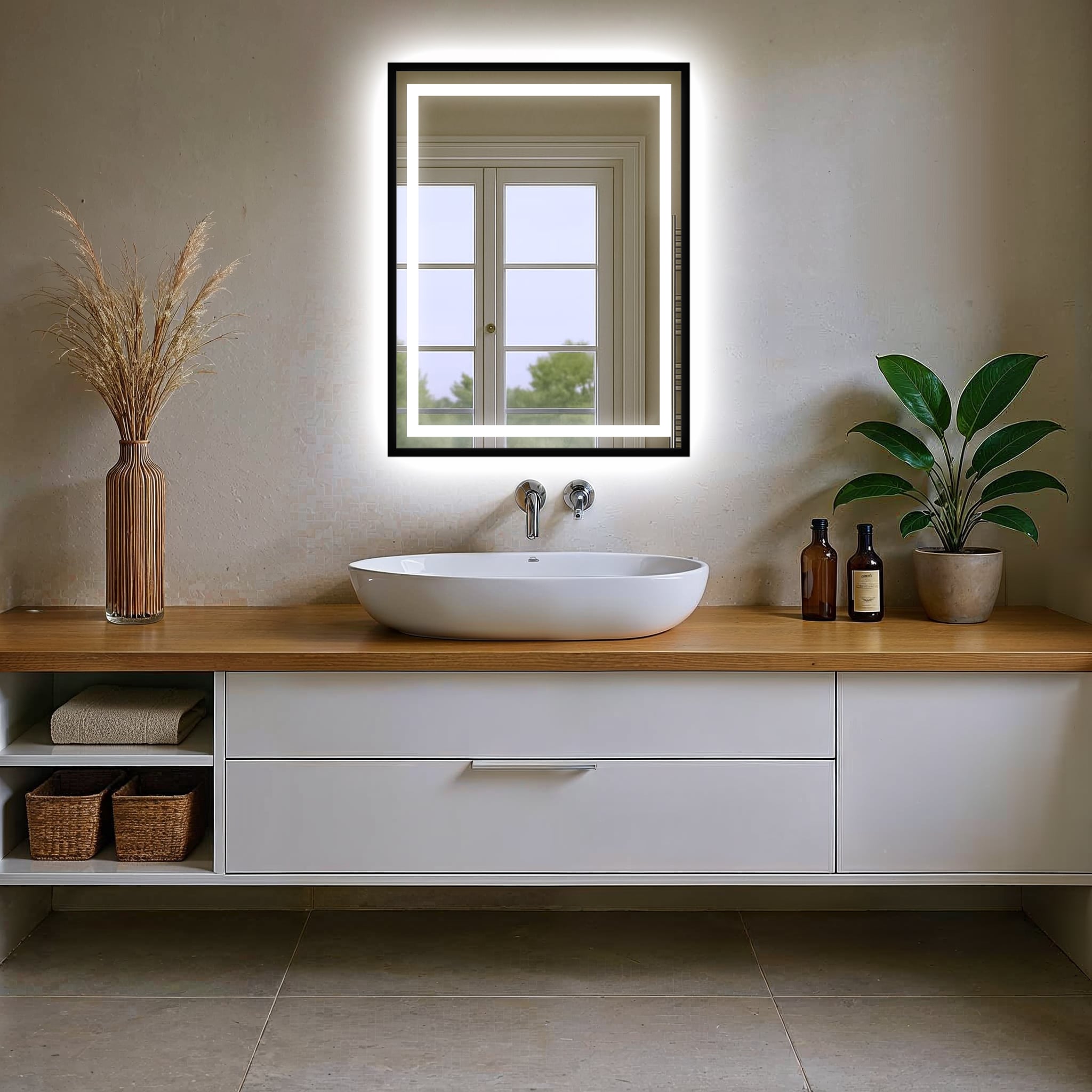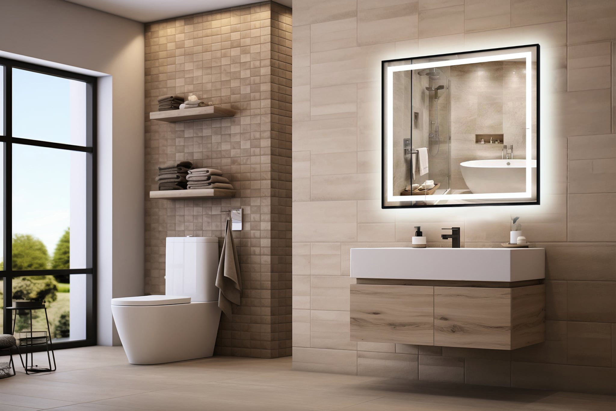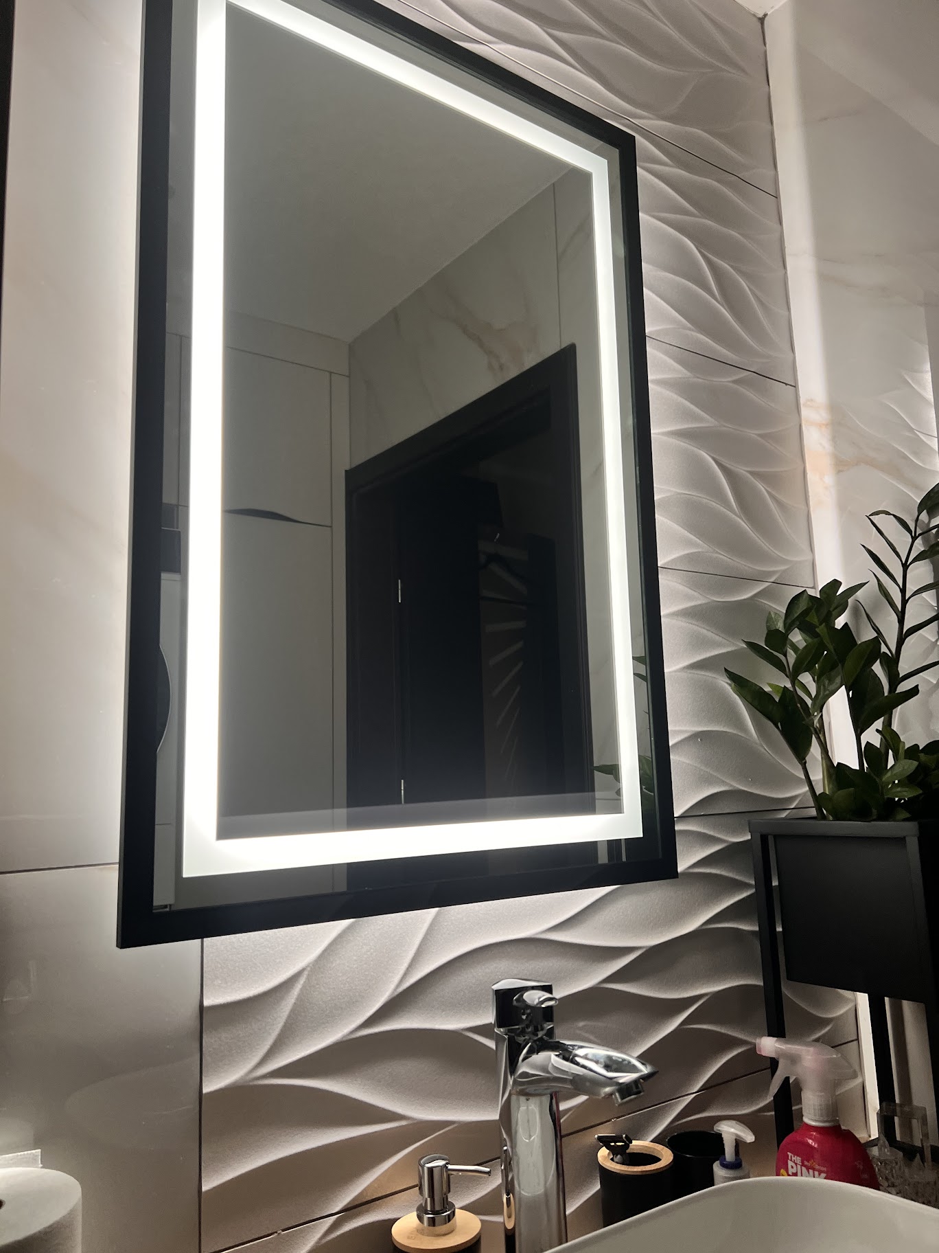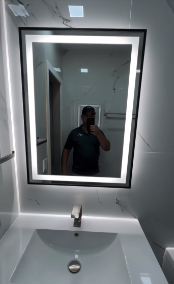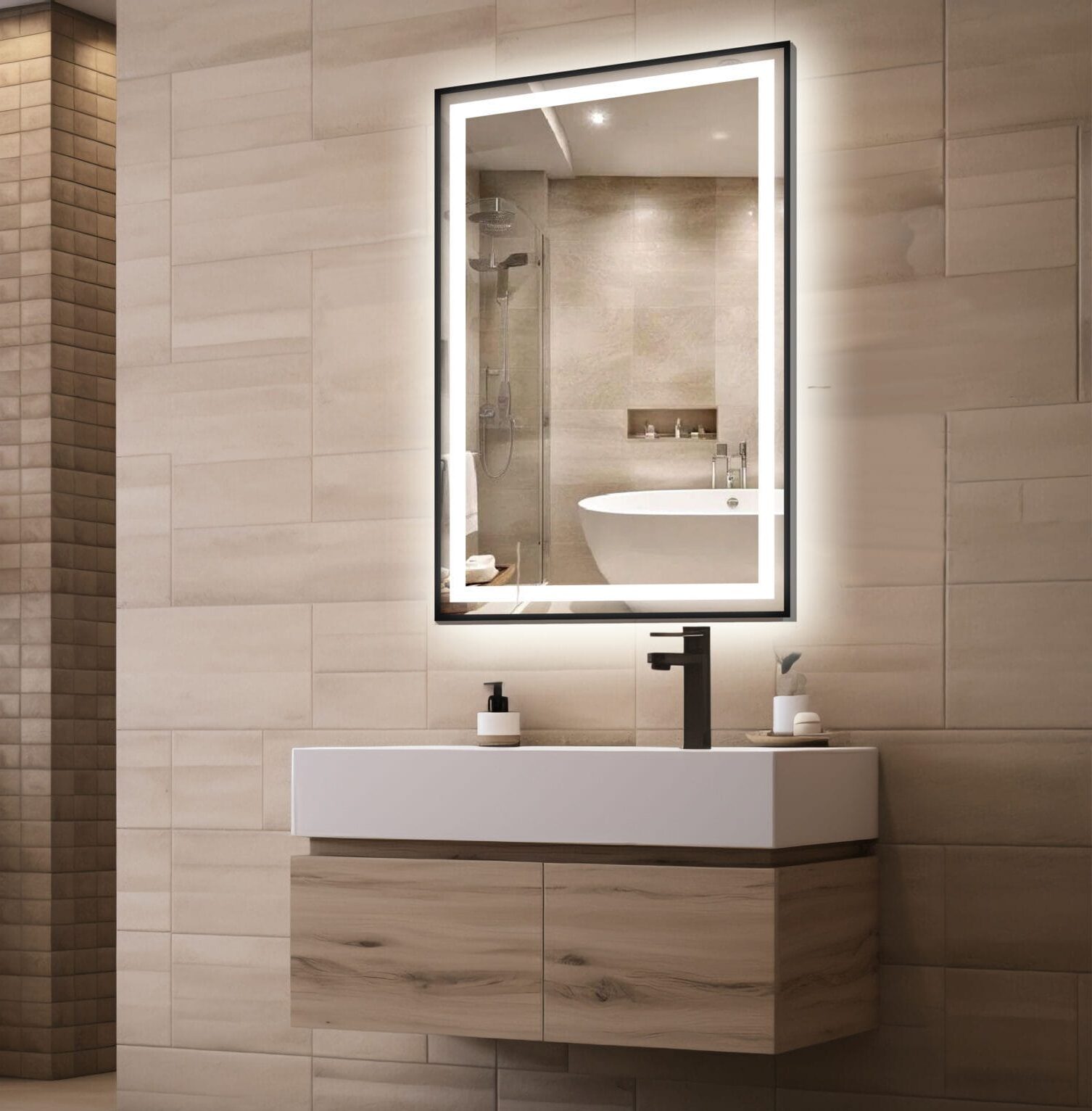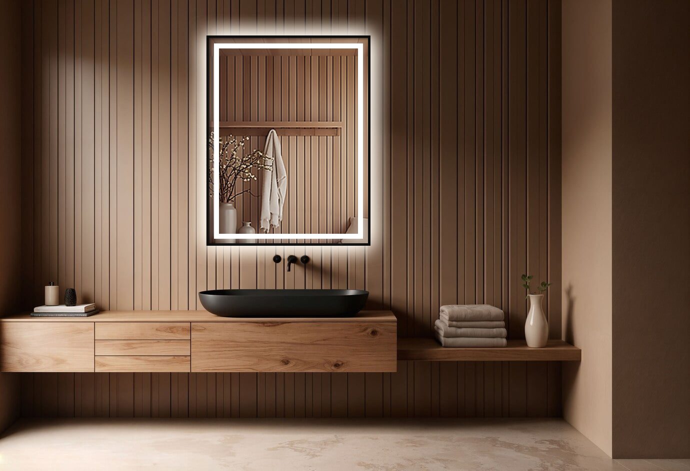 Dzięki wodoodpornemu oświetleniu LED COB, lustro rozświetla przestrzeń subtelną poświatą, dodając jej głębi i klimatu.