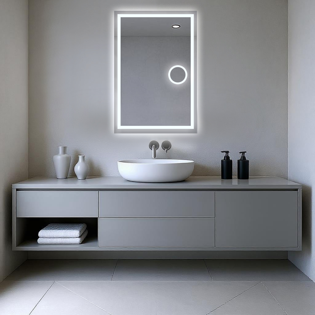Tył lustra: standardowo niezabudowany – dzięki temu podświetlenie tworzy delikatną poświatę wokół tafli, dodając wnętrzu lekkości i elegancji.