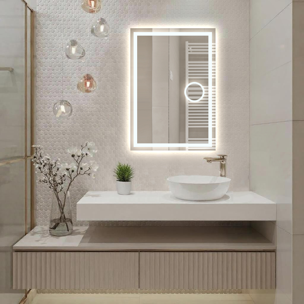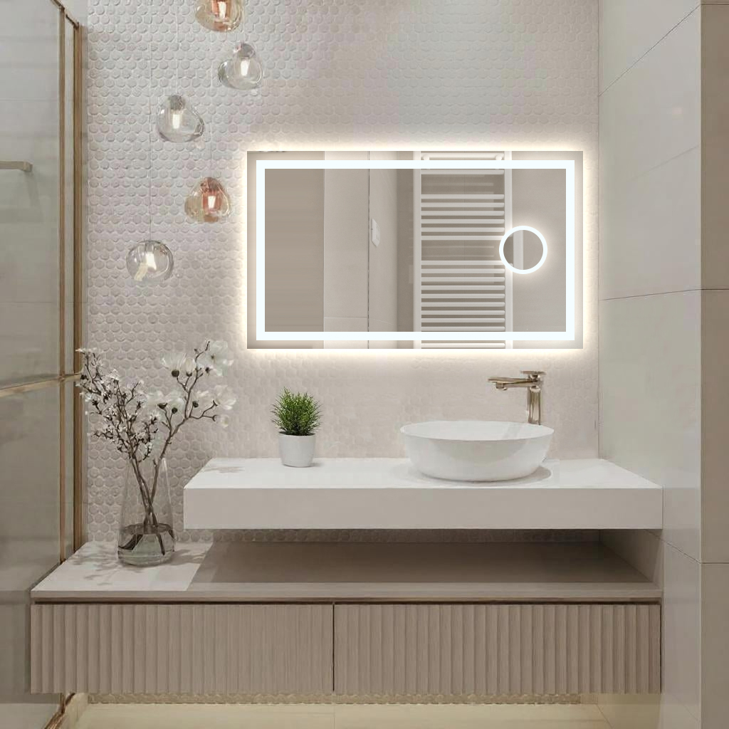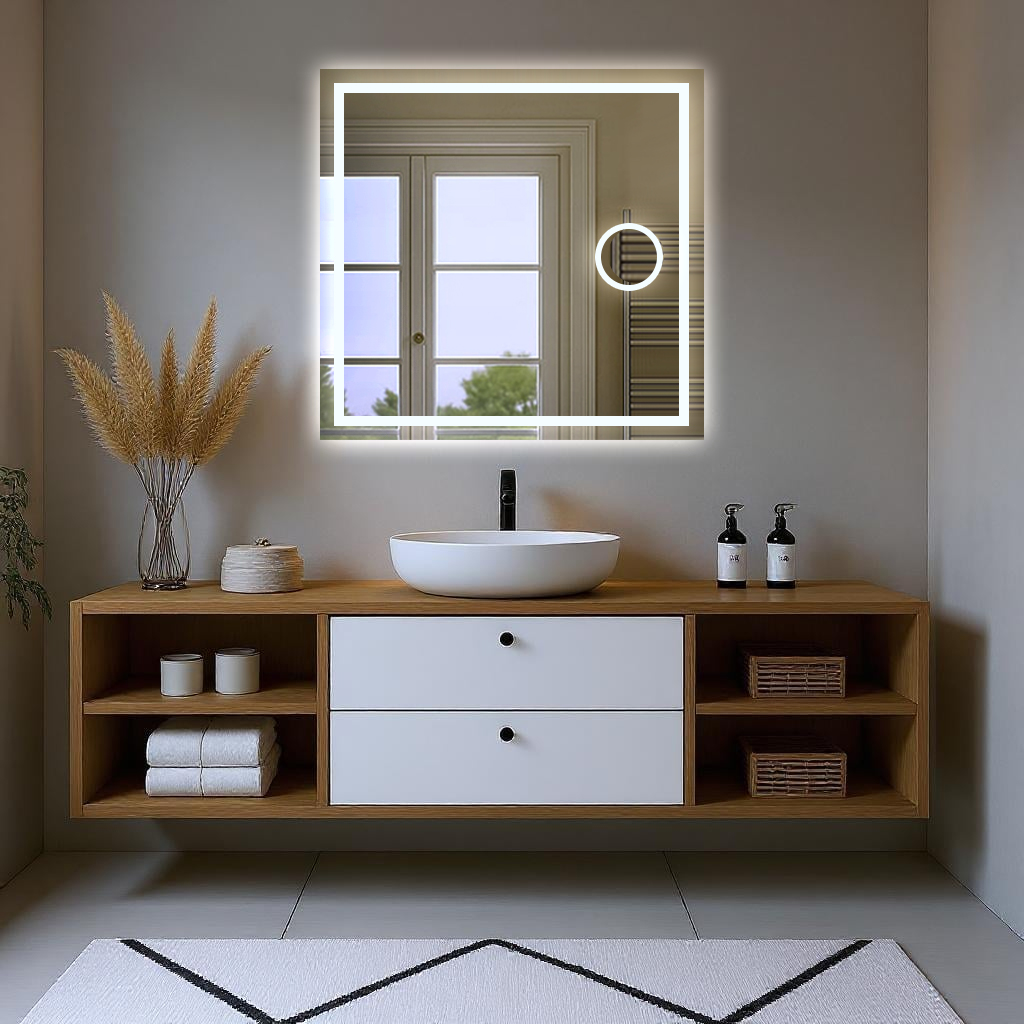 Rodzaj i grubość tafli szkła to najwyższej jakości francuska tafla SAINT GOBAIN 4mm, o jakości PREMIUM. Lustra zawierają podświetlenie LEDOWE – barwa do wyboru (Biała Ciepła 3000K / Biała Neutralna 4500K / Biała Zimna 6000K). Oświetlenie ma charakter dekoracyjny i nie zastąpi standardowego oświetlenia w pomieszczeniu.