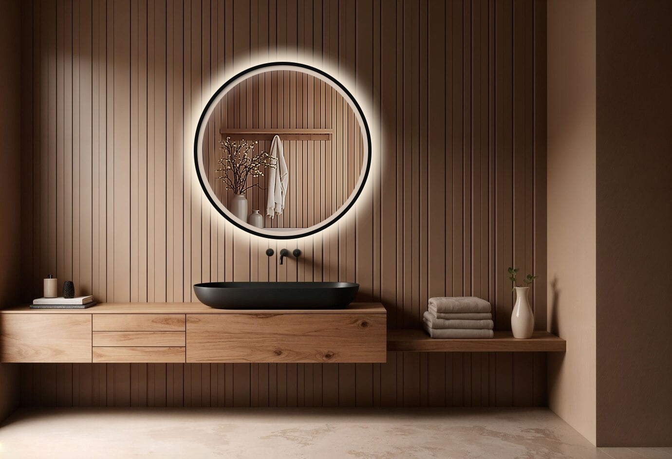 Lustro LED 50 cm to estetyka, funkcjonalność i jakość w minimalistycznej formie – detal, który zmienia wnętrze.