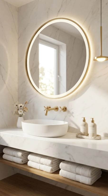 Tył lustra: standardowo niezabudowany – dzięki temu podświetlenie tworzy delikatną poświatę wokół tafli, dodając wnętrzu lekkości i elegancji.