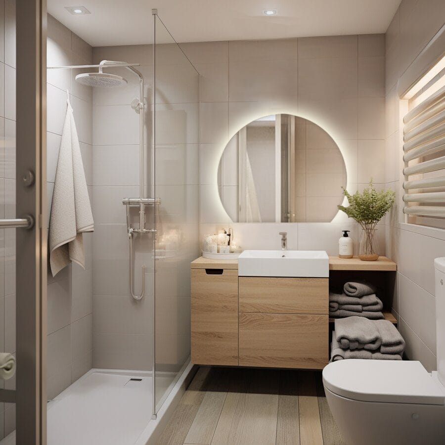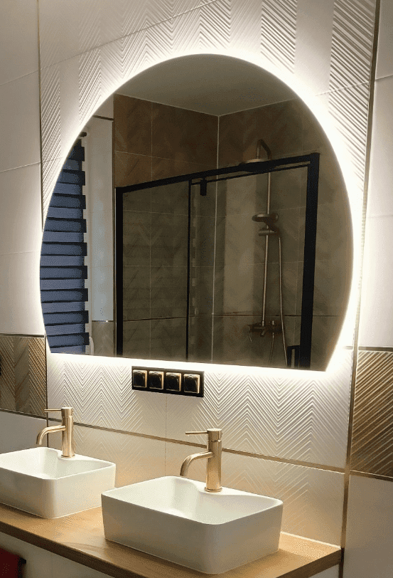 Tył lustra: standardowo niezabudowany – dzięki temu podświetlenie tworzy delikatną poświatę wokół tafli, dodając wnętrzu lekkości i elegancji.