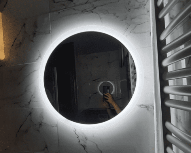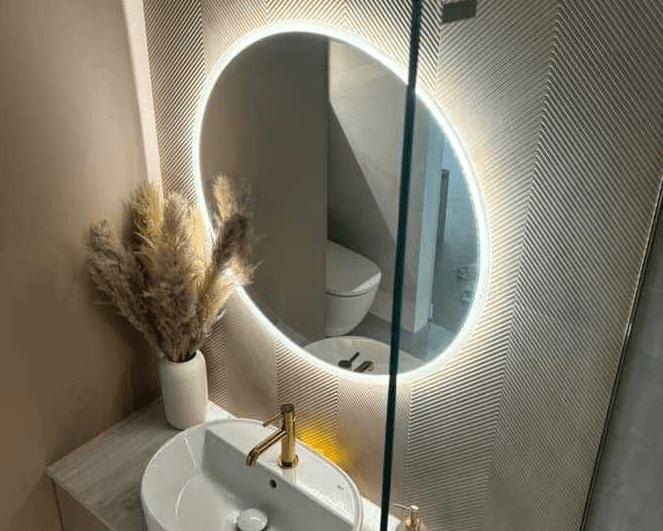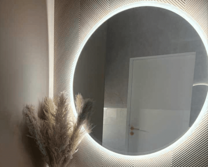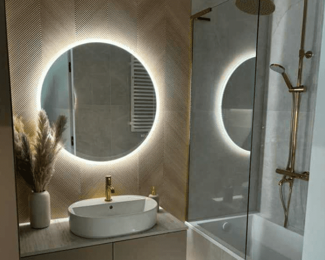 Tył lustra: standardowo niezabudowany – dzięki temu podświetlenie tworzy delikatną poświatę wokół tafli, dodając wnętrzu lekkości i elegancji.