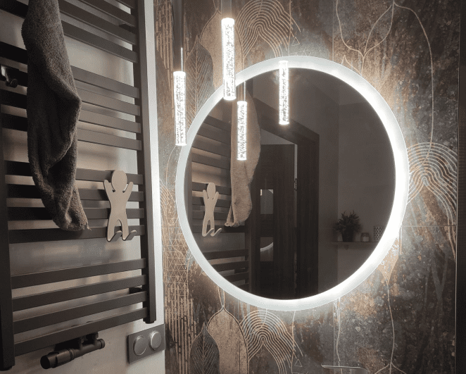 Rodzaj i grubość tafli szkła to najwyższej jakości francuska tafla SAINT GOBAIN 4mm, o jakości PREMIUM. Lustra zawierają podświetlenie LEDOWE – barwa do wyboru (Biała Ciepła 3000K / Biała Neutralna 4500K / Biała Zimna 6000K). Oświetlenie ma charakter dekoracyjny i nie zastąpi standardowego oświetlenia w pomieszczeniu.