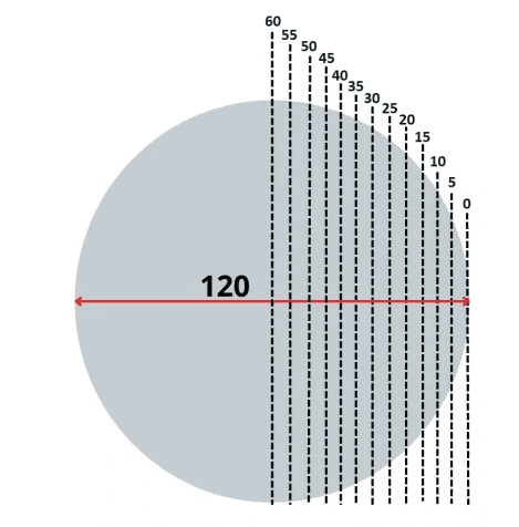 3️⃣ Szerokość ścięcia boku – przycięcie wykonywane w odstępach co 5 cm