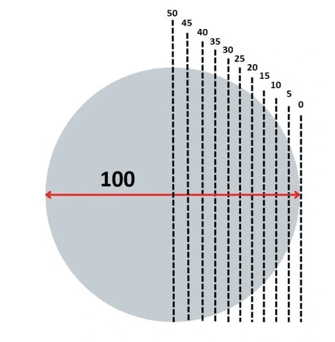 3️⃣ Szerokość ścięcia boku – przycięcie wykonywane w odstępach co 5 cm