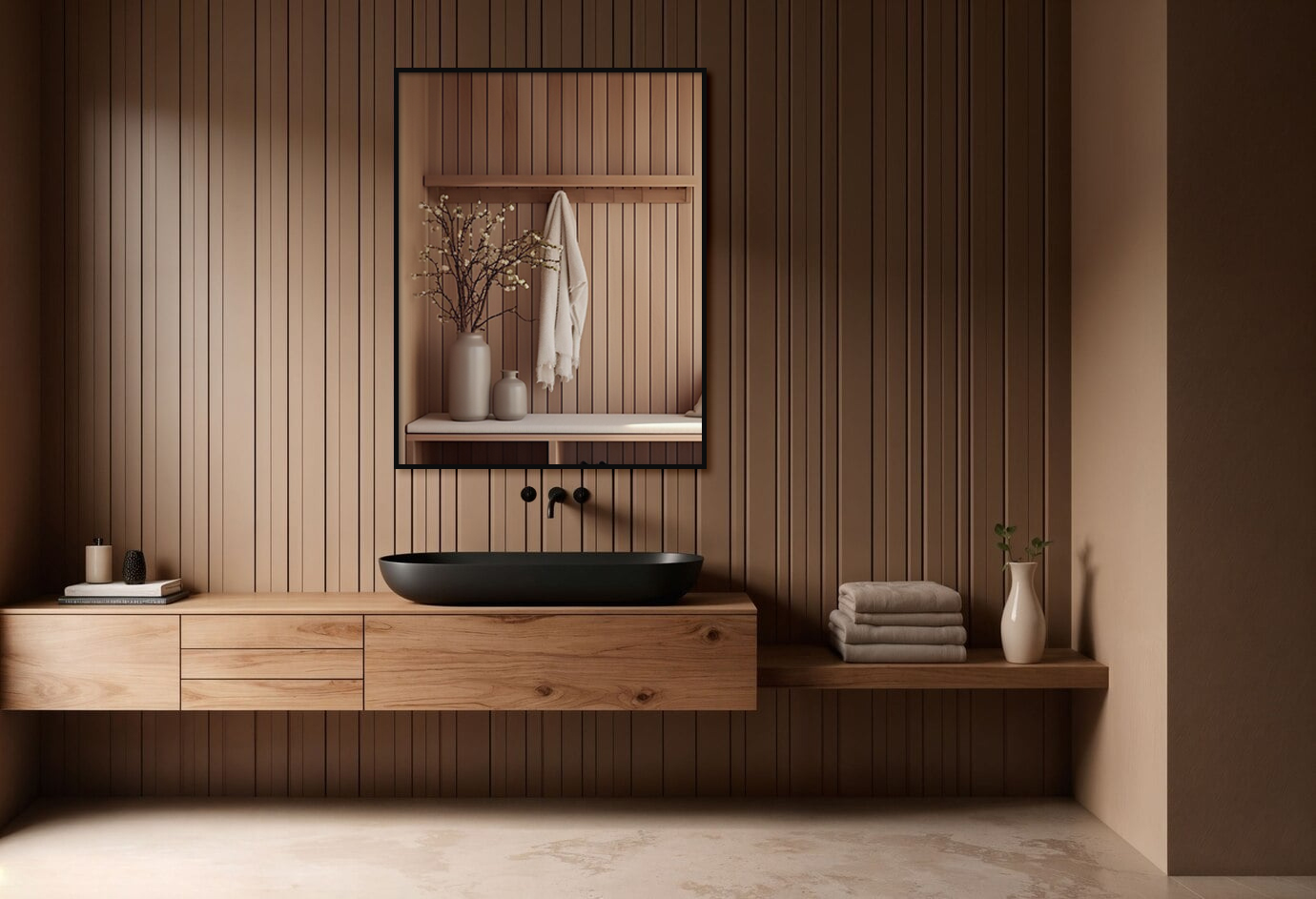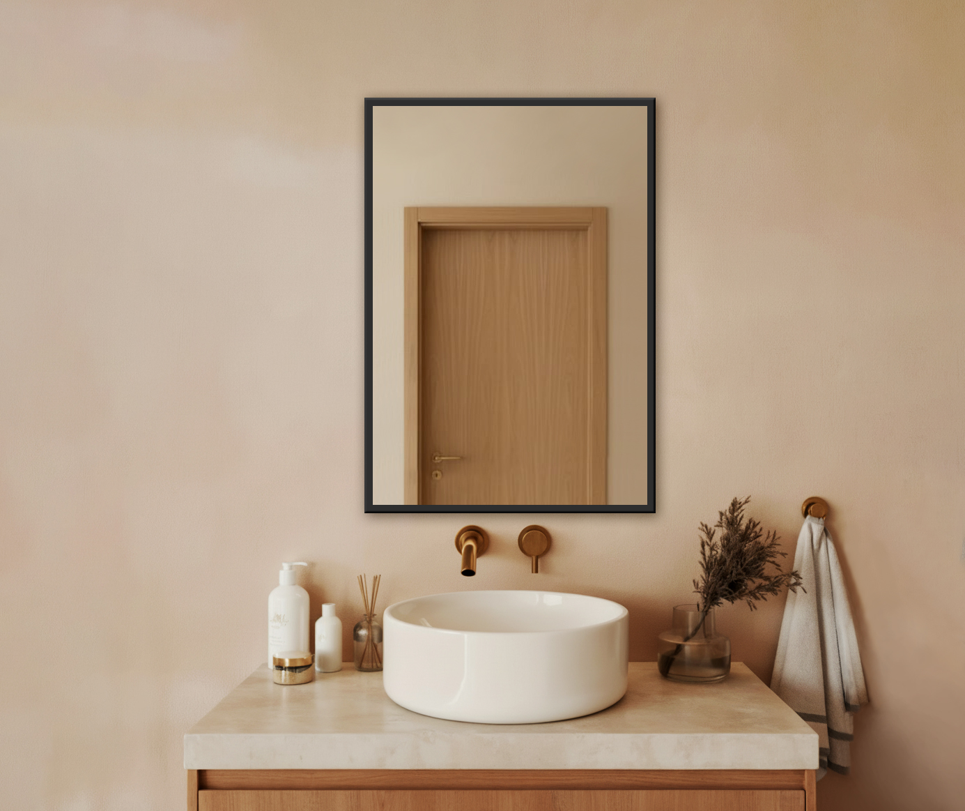 Czarna rama w matowym wykończeniu podkreśla nowoczesny i minimalistyczny charakter wnętrza. Brak podświetlenia sprawia, że to rozwiązanie dla miłośników prostoty i klasycznej formy.