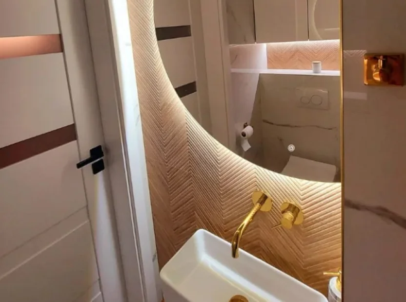 Jest zainstalowany przy dolnej krawędzi lustra, po środku szerokości. Napięcie zasilania to 12V. Cena zawiera usługę montażu